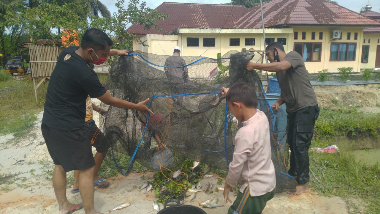 SIAK – Polsek Koto Gasib melakukan panen ikan dari kolam yang berada di belakang Mapolsek yang dikelola oleh Bhabinkamtibmas Pangkalan Pisang Bripka Mahadir bersama Nurani Zai (49), ibu empat anak yang sejak beberapa bulan lalu menjadi muallaf.