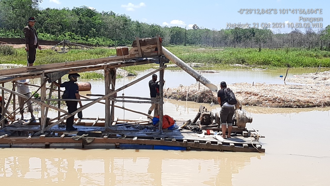 Kuantan Singingi – Polsek Kuantan Hilir, Polres Kuantan Sengingi kembali gagalkan Aktivitas Penambangan Emas Tanpa Izin (PETI). di Desa Kasang Limau Sundai Kecamatan Kuantan Hilir Seberang, Kabupaten Kuantan Singingi. Kamis, (21/10/ 2021)