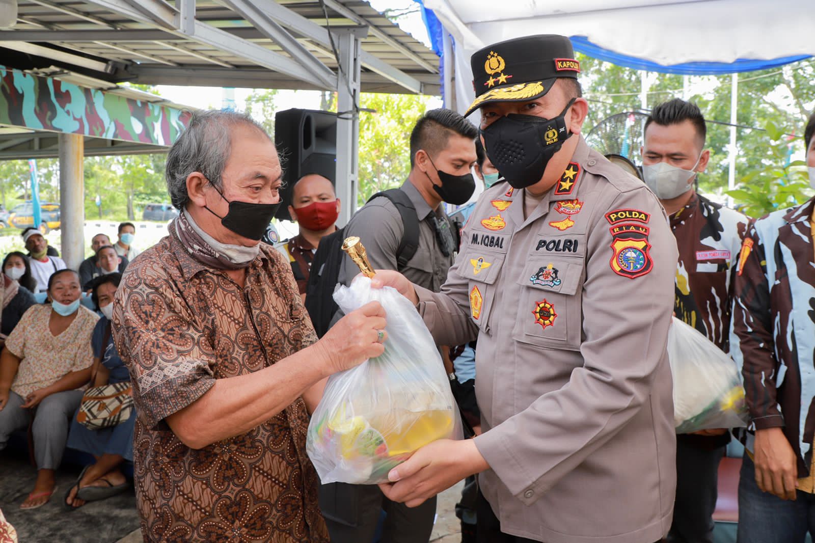 Kemudian usai berbincang, Kapolda Riau bersama Ketua IPK Riau, memberikan sembako berupa beras dan minyak goreng, yang diserahkan secara simbolis kepada beberapa lansia.