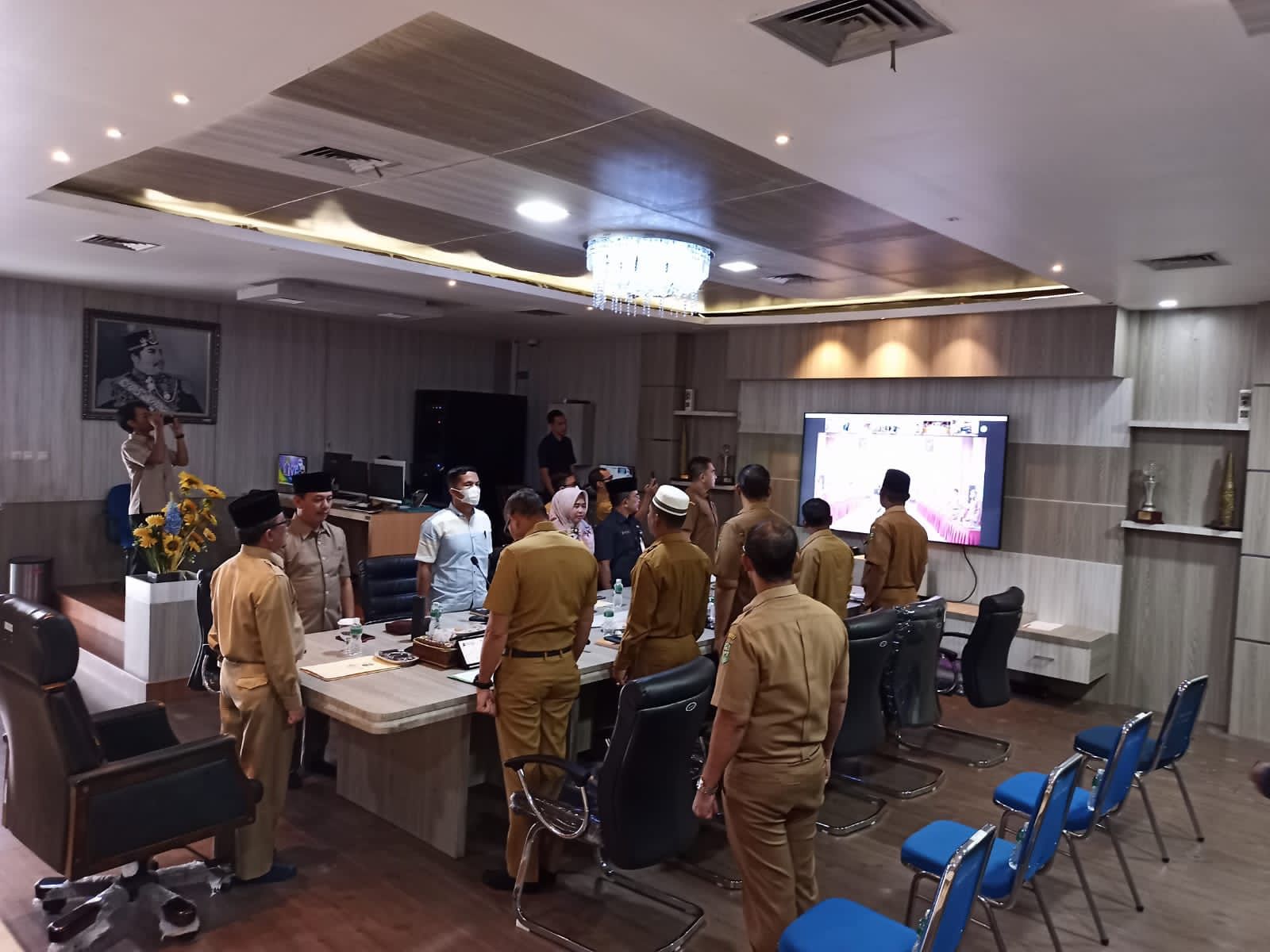 SIAK- Dan Unit Kodim 0322/Siak Lettu Arh Jonson, S.H. menghadiri Rakor Pengendalian Inflasi Daerah Secara Vidcon yang bertempat di Kantor Bupati Siak, Senin (14/11/2022)