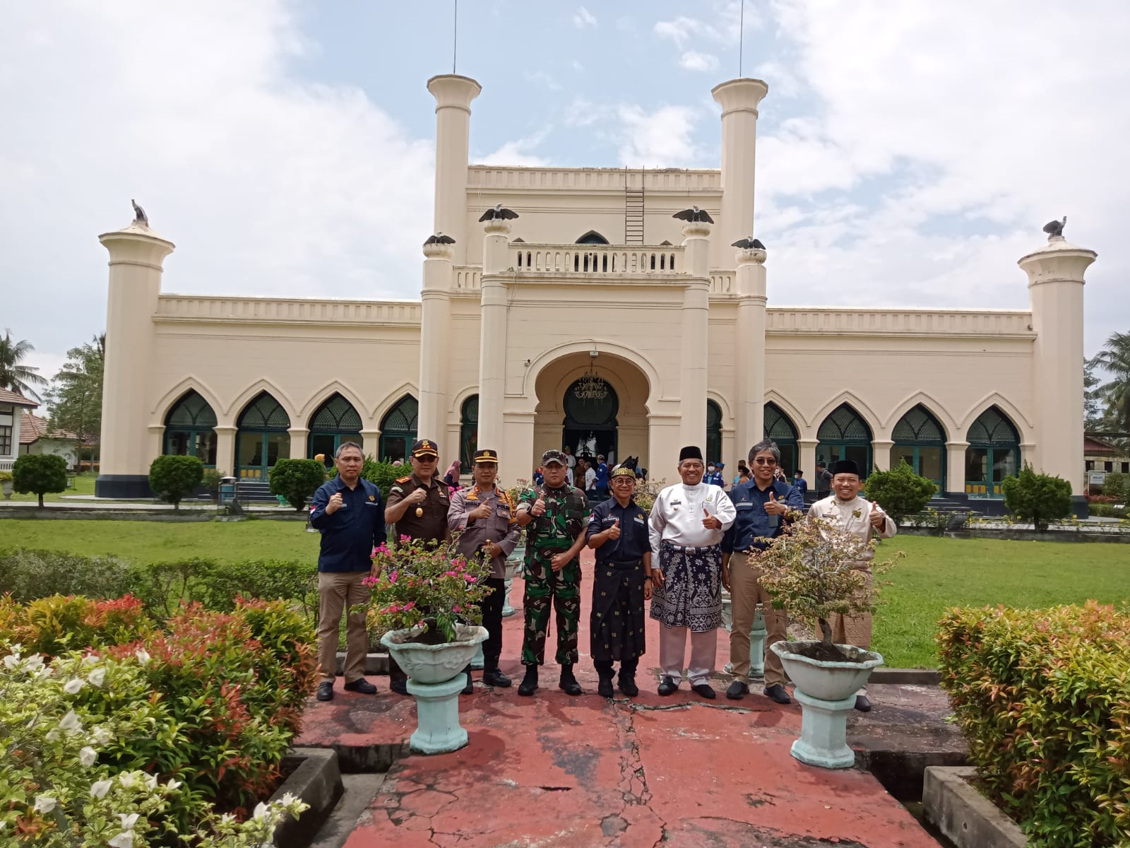 Tampak kekaguman Dwi Soejipto dan rombongan sembari berkeliling melihat-lihat koleksi peningalan Sultan Syarif Hasim II, Sultan terakhir berkuasa dan menghibahkan mahkota Sultan dan turut memberikan sumbangan untuk Negara Kesatuan Republik Indonesia.