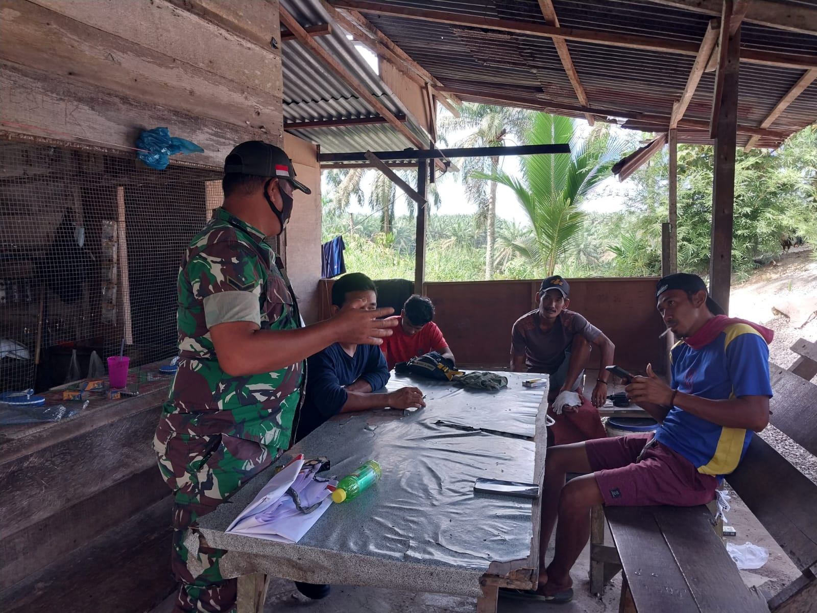 Babinsa Koramil 01/Siak Kodim 0322/Siak mengajak warga Desa binaannya tetap mematuhi prokes, saat melaksanakan komunikasi sosial (komsos) dengan warga di Kampung Lubuk Dalam, Kecamatan Lubuk Dalam, Kabupaten Siak, Senin (12/9/2022).