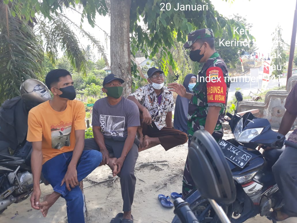Dalam Komsos kali Babinsa Babinsa Koramil 01/Siak Serka Junaidi Silalahi menyampaikan kepada masyarakatnya agar slalu menjalankan protokol kesehatan yang sudah diterapkan oleh Pemerintah, yaitua 3M dengan memakai masker, menjaga jarak, dan mencuci tangan menggunakan sabun, karena mengingat bahwa sampai saat ini Corona Virus-19 belum juga usai.