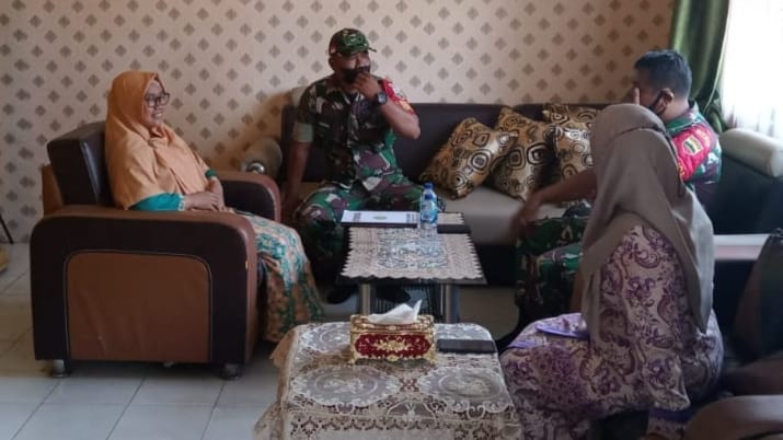 Babinsa Koramil 01/Siak Kodim 0322/Siak mengajak warga Desa binaannya tetap mematuhi prokes, saat melaksanakan komunikasi sosial (komsos) dengan warga di Kampung Sialang Palas, Kecamatan Lubuk Dalam, Kabupaten Siak, Sabtu (24/9/2022).
