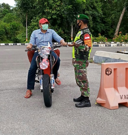 Siak Sri Indrapura – Tim Pengamanan Posko Terpadu percepatan penanganan Covid 19 terdiri dari Koramil 03/Siak bersama Polsek Siak dan Satpol PP Kabupaten Siak, mengawasi lokasi tempat isolasi yang disediakan oleh Pemerintah Kabupaten (Pemkab) Siak yaitu, di Asrama Haji,