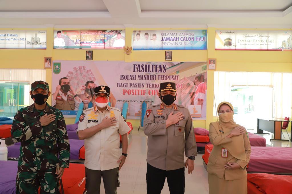 PEKANBARU – Wakapolri Komjen Gatot Eddy Pramono mengunjungi Asrama Haji yang merupakan lokasi yang ditetapkan pemerintah sebagai tempat isolasi terpusat di Pekanbaru, pada Selasa (10/8/2021).