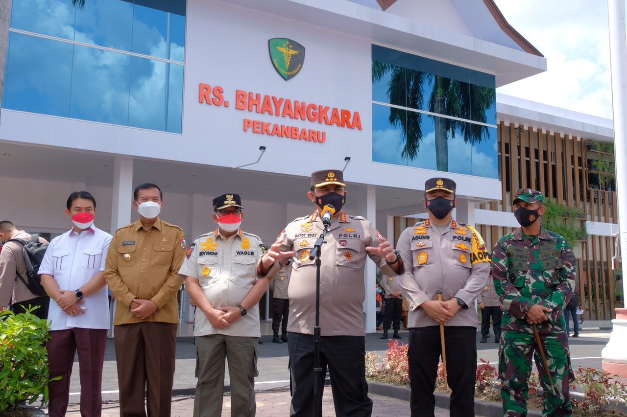 “Kami bersama rombongan datang ke Riau yang pertama bertujuan untuk memastikan bahwa pelaksanaan PPKM bisa berjalan dengan benar dan apa yang sudah disampaikan oleh bapak Presiden, bapak Kapolri, berjalan sesuai dengan yang diharapkan. Langkah langkah sudah di lakukan Forkopinda Pemprov dan kodya Pekanbaru. Ada beberapa hal harus di evaluasi dalam pembatasan pembatasan sampai dimana yang akan dilaksanakan dan perlu dibicarakan antara Forkopinda Provinsi dan Forkopinda Kota untuk kedepannya termasuk percepatan pelaksanaan vaksinisasi,” terang Komjen Gatot.