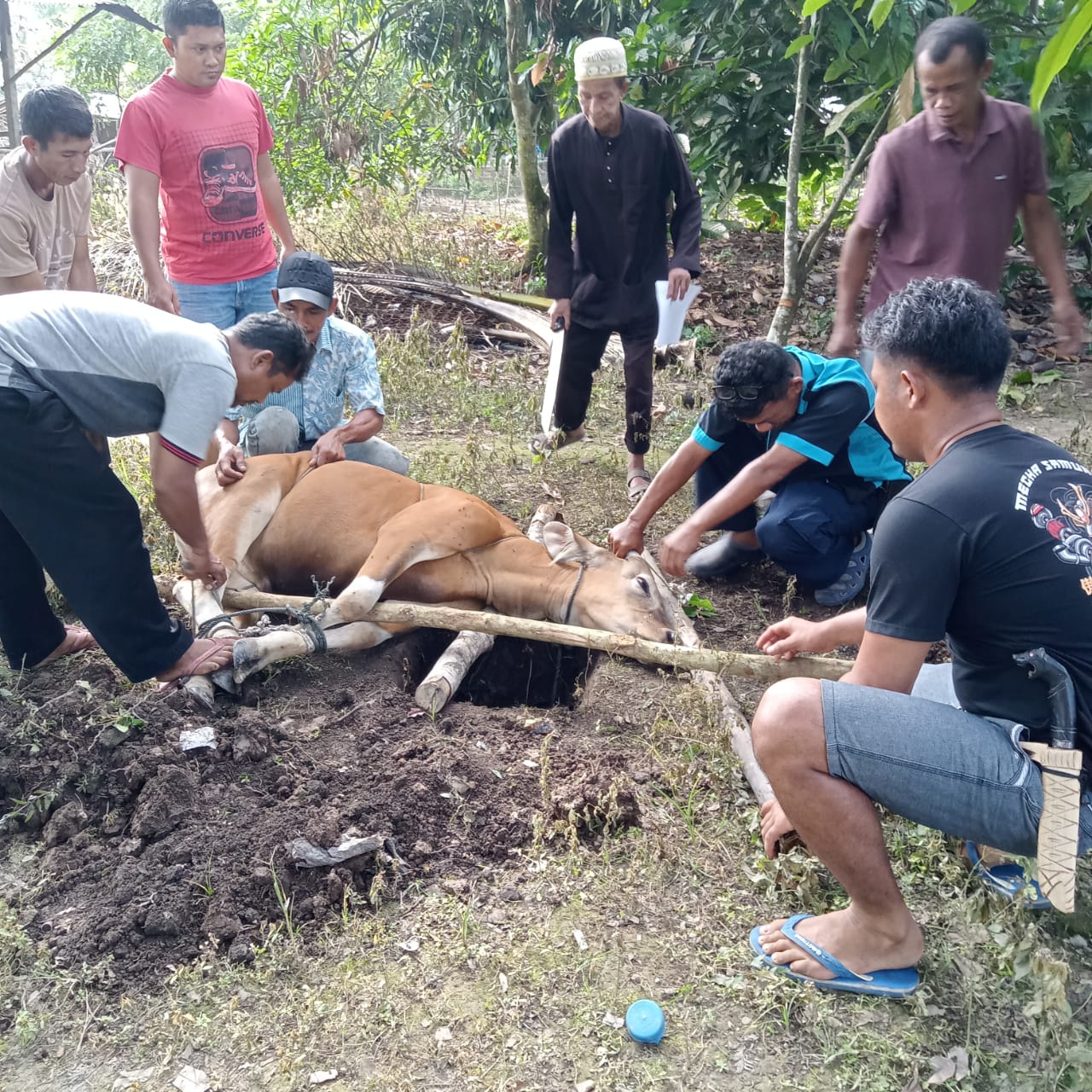 “Alhamdulillah, saat penyembelihan yang berlangsung  tadi dapat berjalan dengan lancar, dan dibantu oleh Penghulu kampung juga dibantu oleh masyarakat di sini.”Ujarnya.
