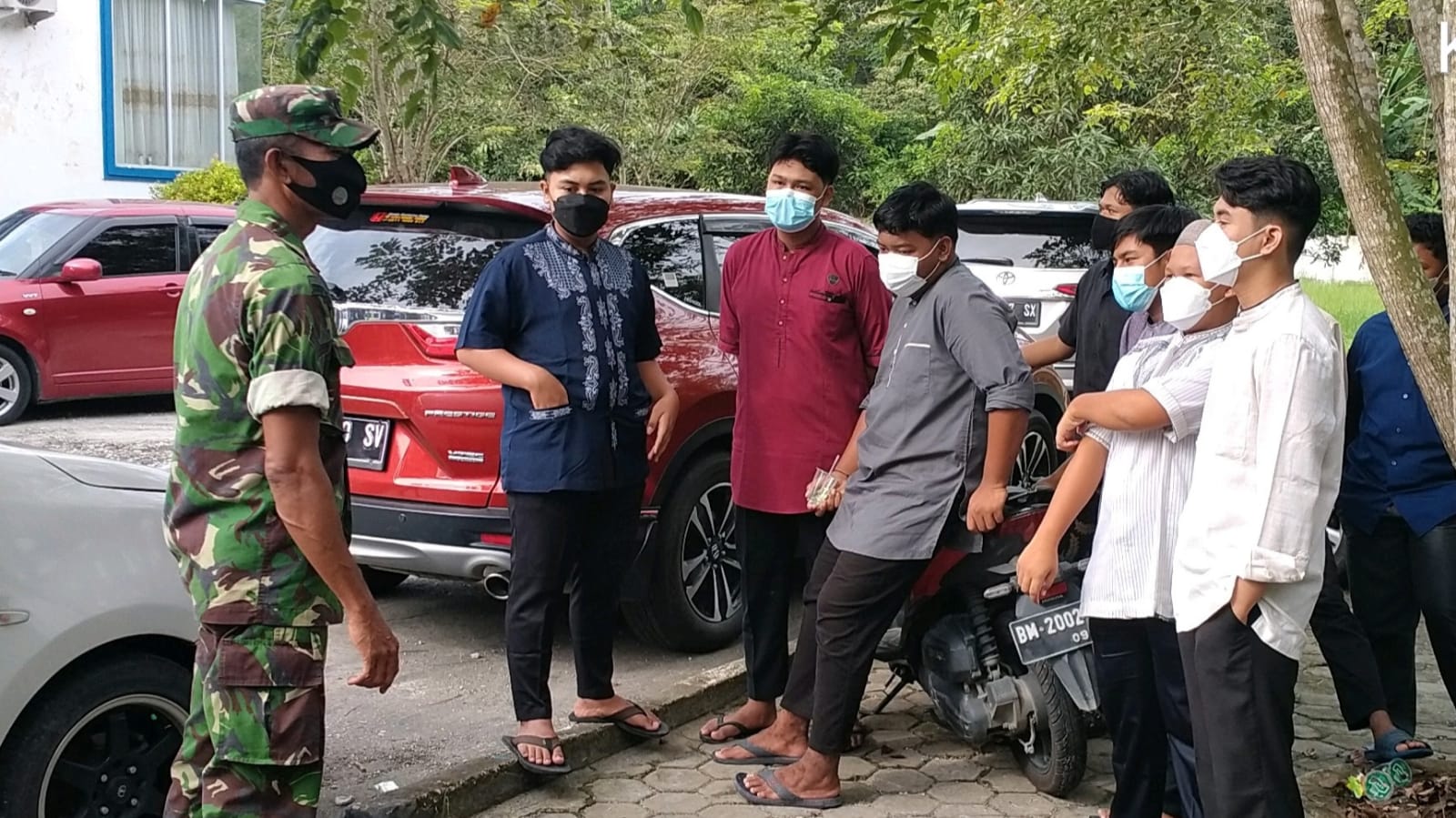 Babinsa Koramil 01/Siak saat Komsos Serka Joni menjelaskan, himbauan yang diberikan kepada warga tersebut yaitu selalu gunakan masker, jaga jarak, kurangi kerumunan.