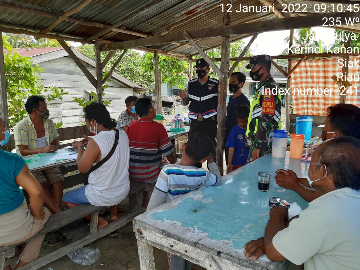 SIAK-Babinsa Koramil 01/Siak, Kodim 0322/Siak Serka Junaidi Silalahi melaksanakan kagiatan Komunikasi Sosial dan himbauan Protokol kesehatan kepada Masyarakat Kampung Jati Mulya Kecamatan Kerinci Kanan Kabupaten Siak. Rabu,12 Januari 2022.