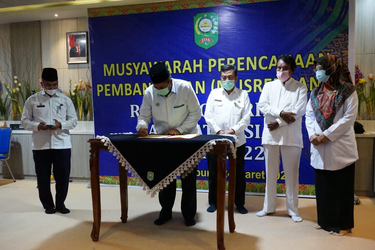 Musrenbang kabupaten itu bertema sasaran dan program Prioritas pembangunan Kabupaten Siak Tahun 2022, serta menghimpun aspirasi dan harapan masyarakat terhadap sasaran dan program pembangunan daerah. Salah satu panduan dalam menyampaikan persepsi dan pemahaman bersama tentang pedoman pembangunan tahun 2022.