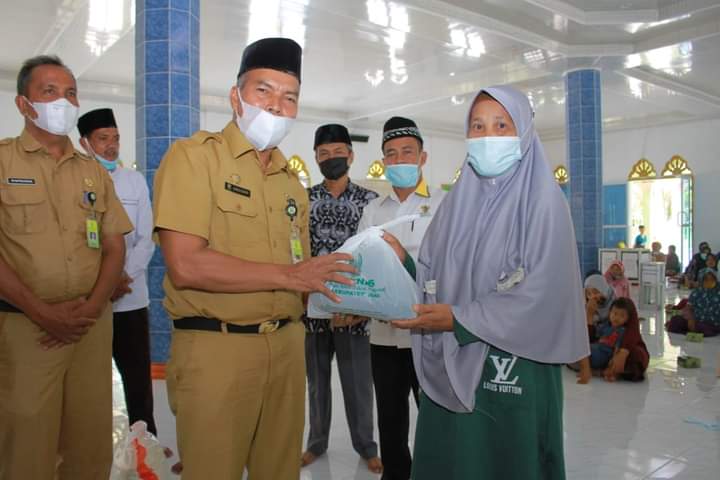 SIAK- Pemerintah bersama Badan Amil Zakat Nasional (Baznas) Kabupaten Siak melakukan pendistribusian Zakat konsumtif tahap III kepada Mustahik Kampung Sungai Limau, Kecamatan Pusako, Selasa (06/07/2021).
