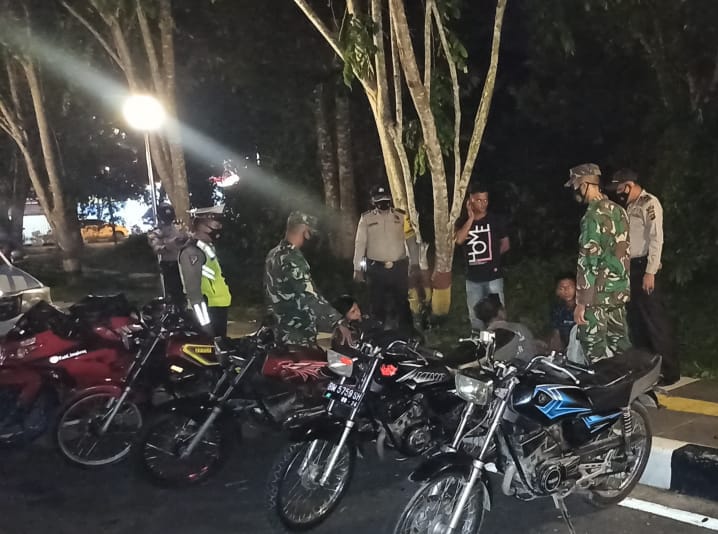 Operasi Yustisi Selama PPKM, Aparat Gabungan Dari Koramil 03/Siak Dan Polsek Siak Keliling Taman Setiap Malam