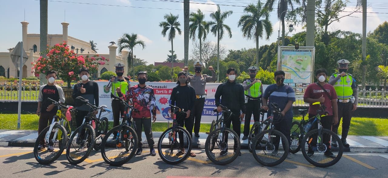 Pada hari ini Rabu ( 04/11/20 ), Satgas Preemtif Operasi Zebra Lancang Kuning tahun 2020 Polres Siak bertempat di jalan Sultan Syarif Qasyim tepatnya di depan Istana Siak membagikan masker memberikan edukasi tentang manfaat transportasi yang meraksat kepada komunitas sepeda yang ditemui.