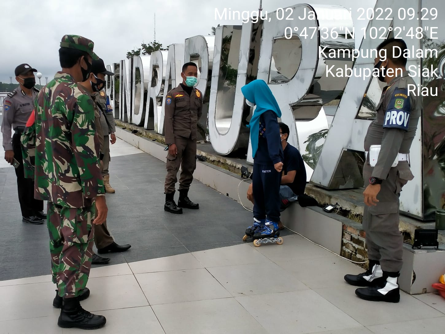 Kegiatan patroli ini petugas nelusuri tempat wisata yang ada di kota Siak, seperti taman Siak bermadah, dan Taman jambatan Tengku Agung Sultan Latifah Kabupaten Siak. Minggu (2/1/2022).