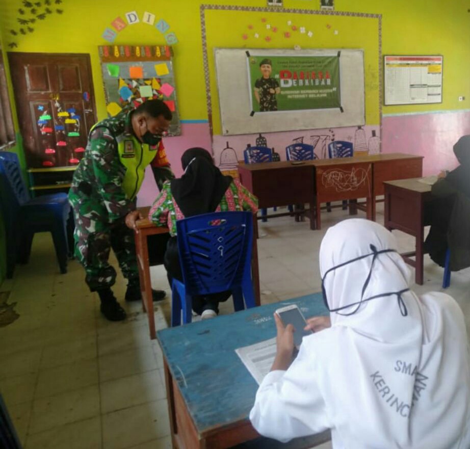 Menyikapi hal tersebut, Kodim 0303/Bengkalis Koramil 03/Siak melalui Babinsa‎ Kampung Buana Bakti membantu proses belajar mengajar anak-anak di Kampung Buana Bakti, Kecamatan Kerinci Kanan, Kabupaten Siak, Kamis (24/12/2020).