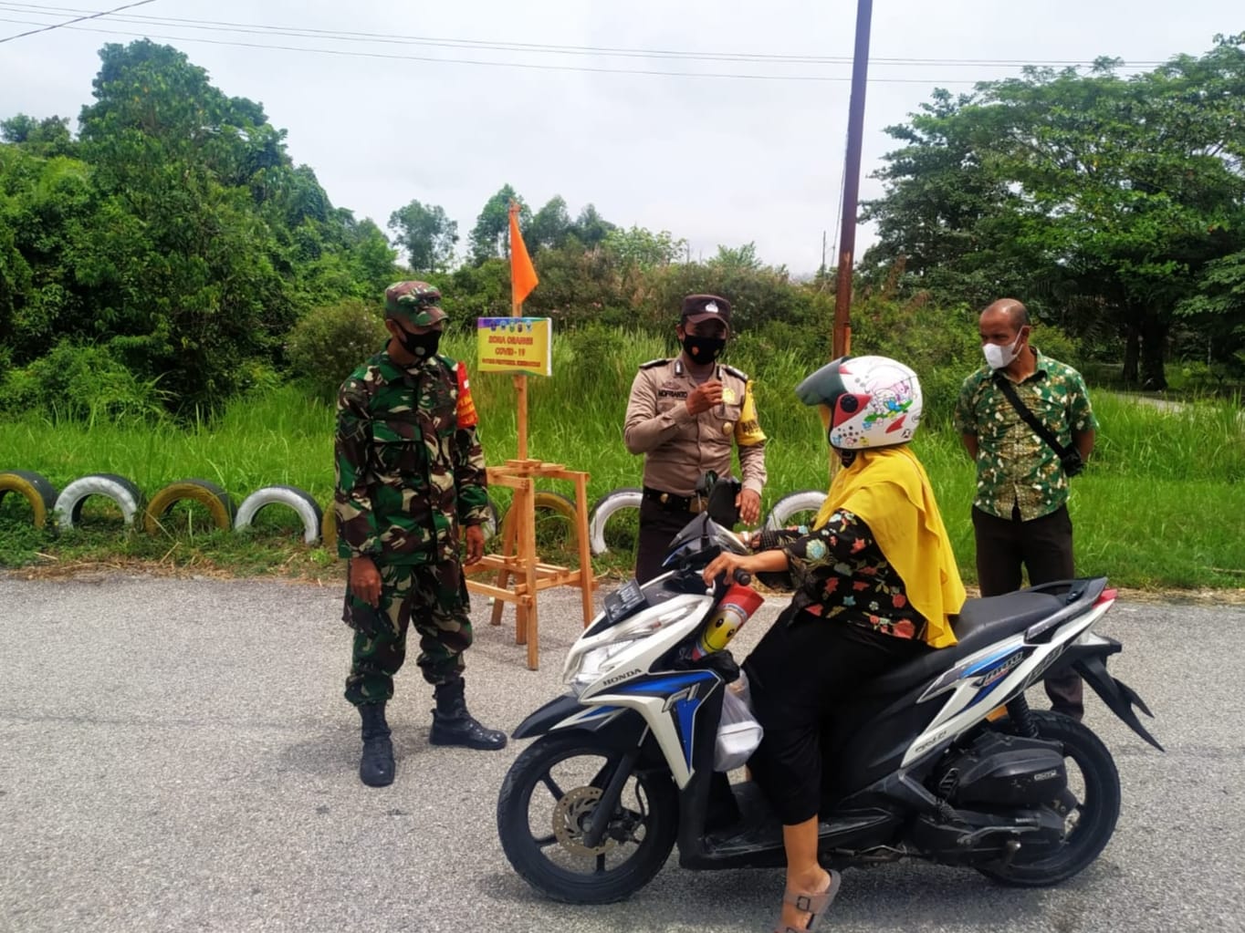 Siak Sri Indrapura – Upaya pencegahan Covid-19 Aparat Babinsa bersama Bhabinkamtibmas dan Aparatur Kelurahan melaksanakan Razia tertib Protokes khususnya Penggunaan Masker dipintu masuk Komplek perumahan Pemda, Kelurahan Kampung Rempak Kecamatan Siak Kabupaten Siak, Senin (25/10/2021).