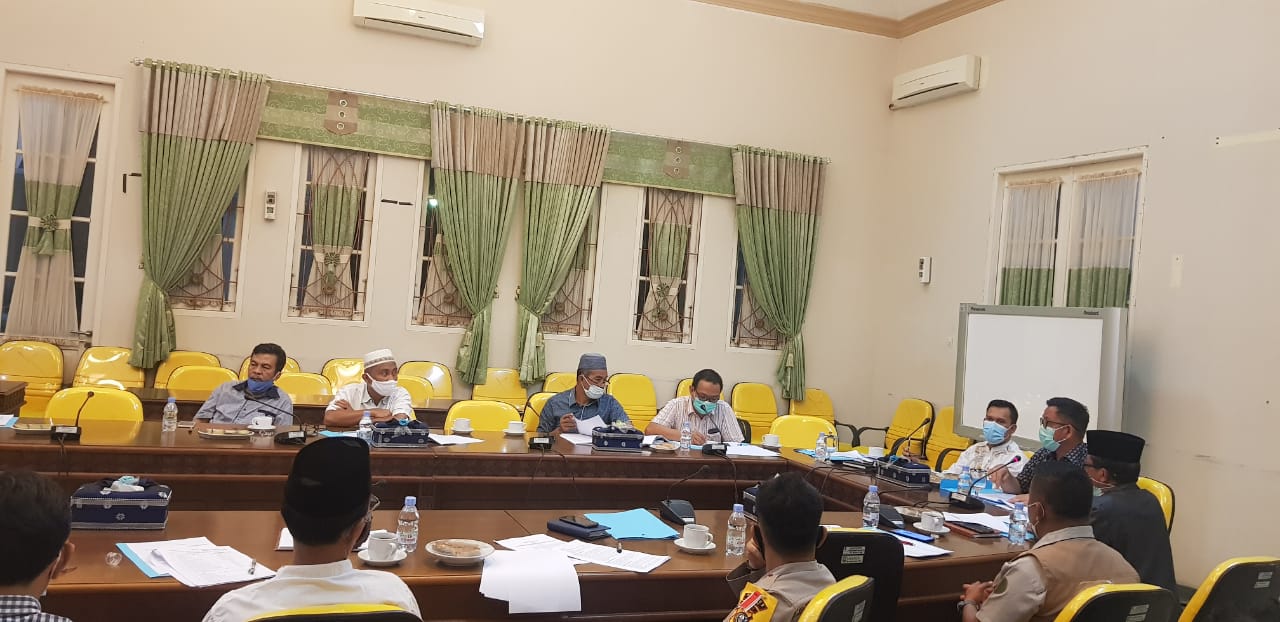 SIAK – Pelaksana Jabatan Sementara (Pjs) Bupati Siak Indra Agus Lukman bersama Unsur Forkopimda gelar rapat dengan agenda Pembentukan Satuan Tugas (Satgas) Penanganan Covid-19 sebagai langkah awal Persiapan Pelaksanaan Pembatasan Sosial Berskala Kecil (PSBK) Kecamatan Tualang.di Zamrud Room,Komplek Perumahan Abdi Praja. Selasa (6/10/2020) malam.
