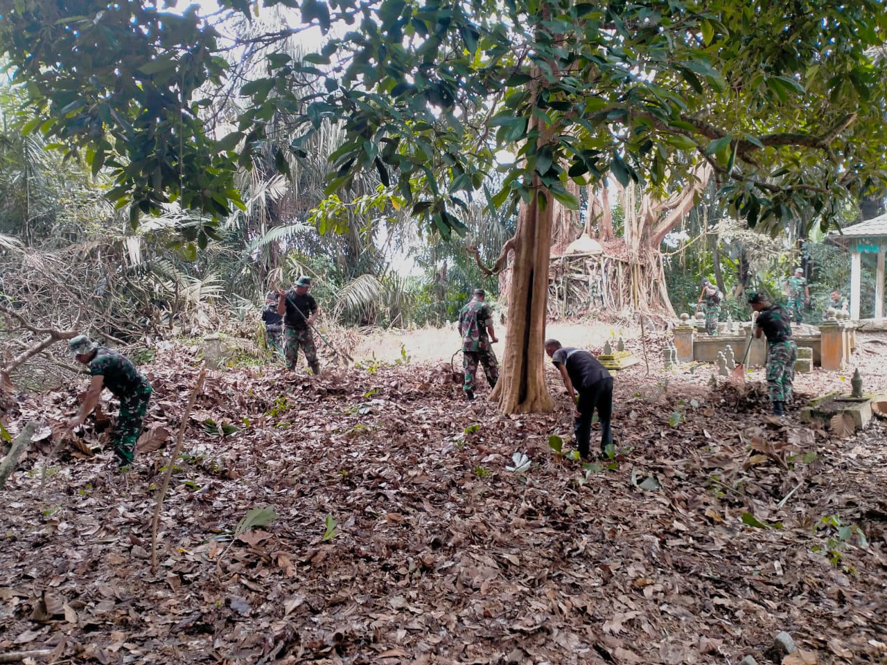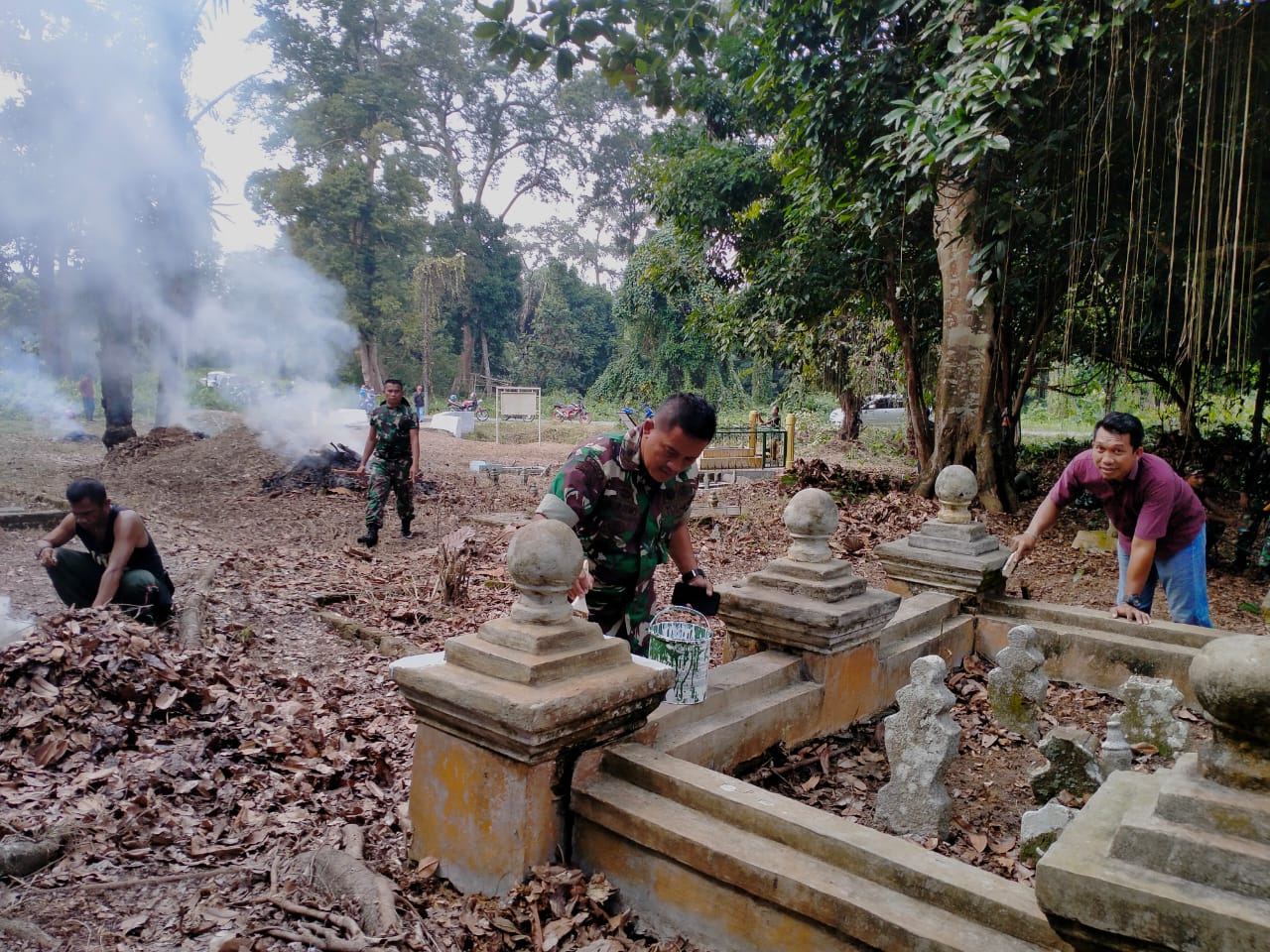 SIAK- Personel Kodim 0322/Siak yang di pimpin Kasdim 0322/ Siak kembali gelar kegiatan membersihkan Makam Datuk Sesido di kampung Kampung Tengah, Kecamatan Mempura, Kabupaten Siak. Jumat 29/7/2022.
