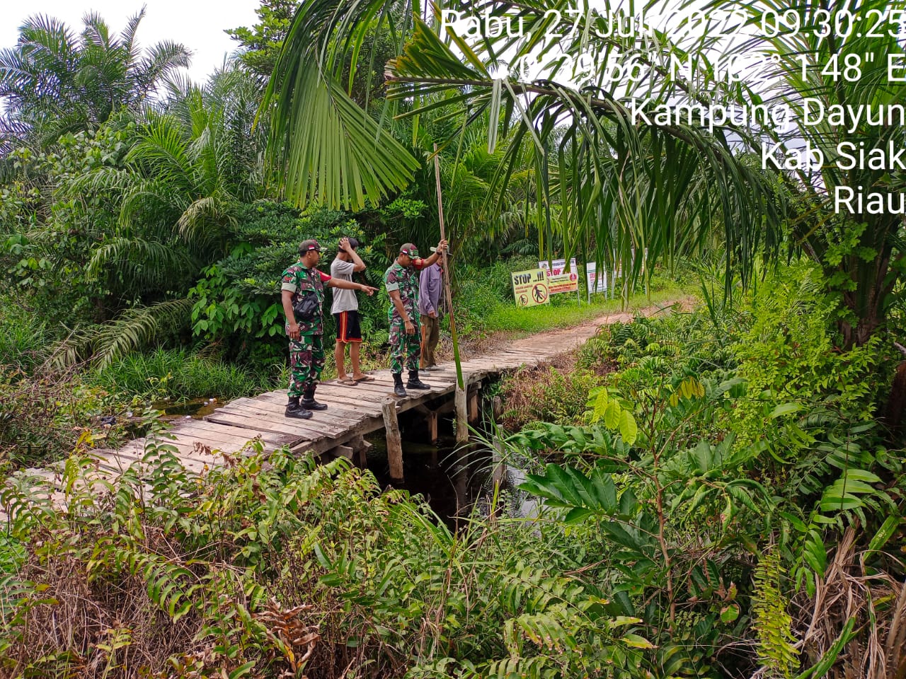 SIAK- Dalam mencegah terjadinya kebakaran hutan dan lahan, Personel Koramil 01/Siak Jajaran Kodim 0322/Siak Serma Zamzami melaksanakan kegiatan Patroli Karhutla di Kampung Dayun, Kecamatan Dayun, Kabupaten Siak. Rabu, 27 Juli 2022.
