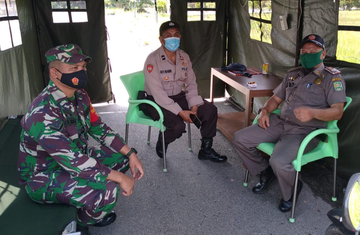 Siak – Personil Koramil 03/Siak bersama Polsek Siak dan Satpol PP Perketat tak mengenal lelah walaupun dihari Lebaran melaksanakan penjagaan tempat Isolasi pasien Covid-19 di Asrama Haji yang terletak di Kel. Kampung Rempak Kec. Siak Kab. Siak.