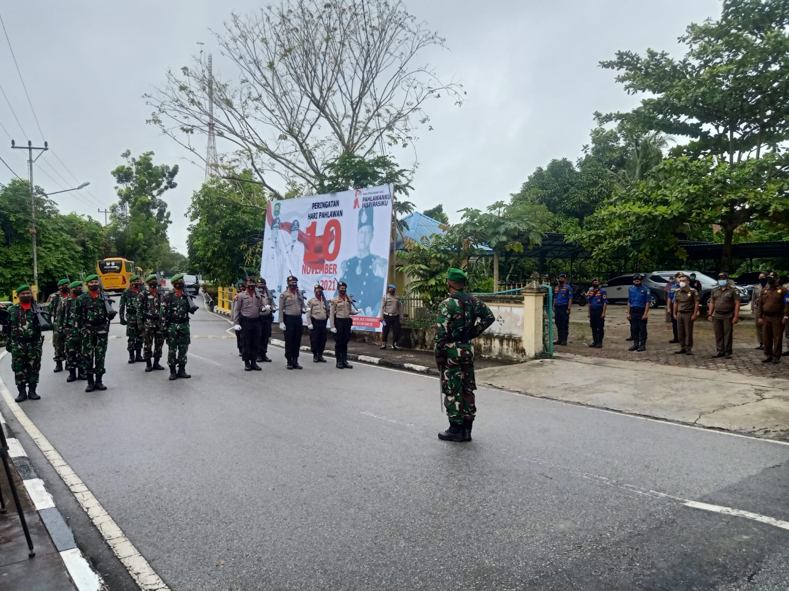 Siak Sri Indrapura – Personil Koramil 03/Siak Kodim 0303/Bengkalis sebanyak 1 Peleton bergabung dengan 1 peleton anggota Polres Siak, Pleton Damkar dan Pleton Dishub serta Pleton Satpol PP Siak untuk mengikuti upacara peringatan Hari Pahlawan bertempat di depan Makam Pahlawan Sultan Syarif Kasim II. Selain itu Juga dihadiri oleh Unsur Forum Koordinasi Pemerintahan Kabupaten Siak dan Para Eselon 2 Pejabat daerah Pemkab Siak serta para tamu undangan.