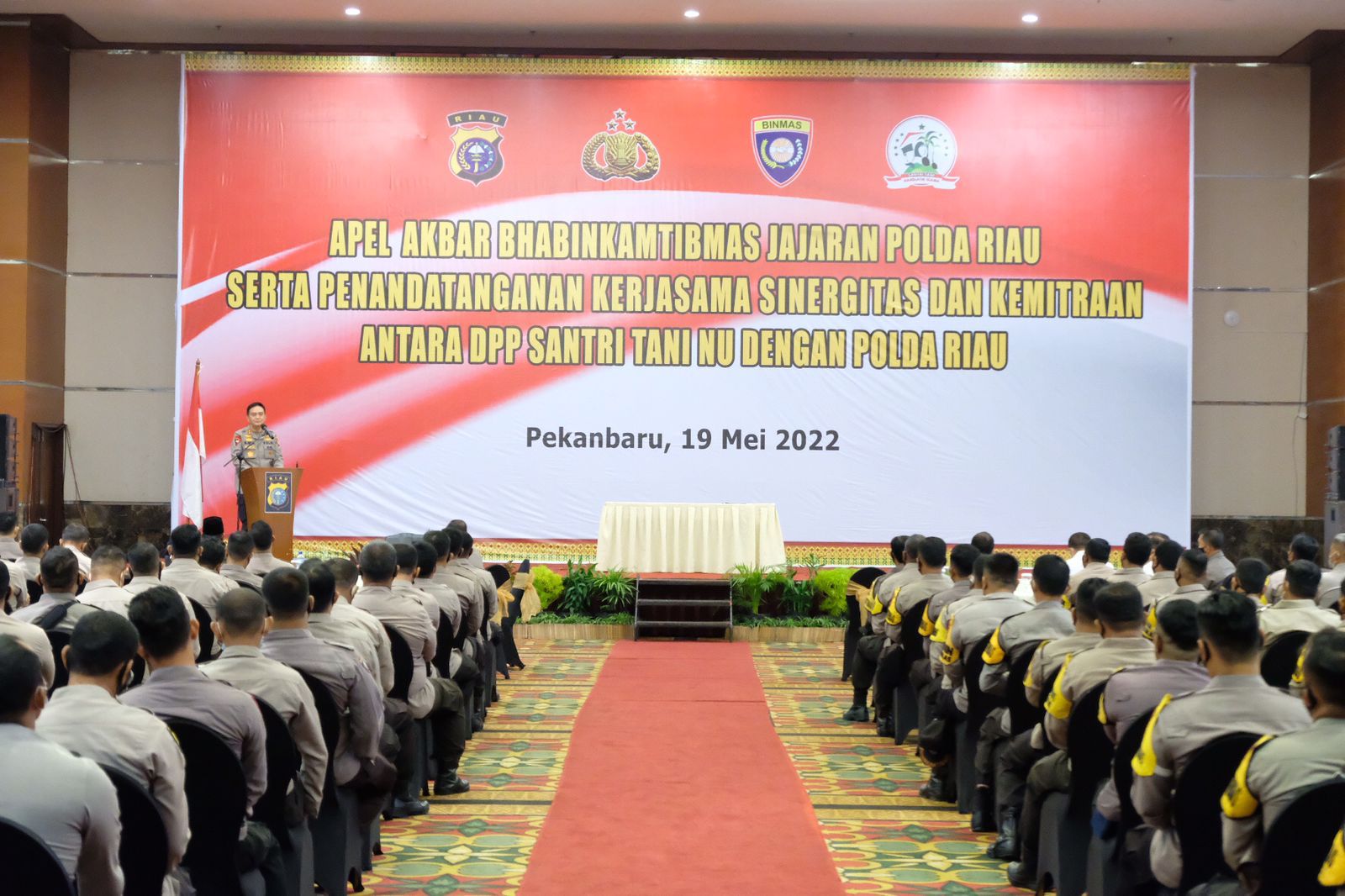 Acara yang turut dihadiri Ketua DPP Santri Tani T. Rusli Ahmad SE MM dan para PJU Polda tersebut diikuti sebanyak 987 orang Bhabinkamtibmas dari seluruh jajaran Polda Riau.