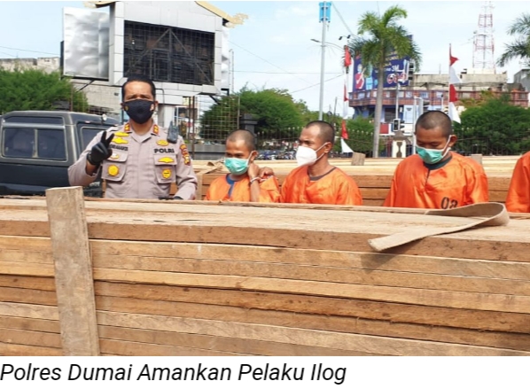 Empat pelaku ini diringkus Satuan Reserse Kriminal Polres Dumai SO (32), SS (38) dan MT (22) selaku supir dan MR (19) selaku kernet yang mengangkut, menguasai atau memiliki kayu hasil hutan tanpa dilengkapi surat keterangan sahnya hasil hutan.