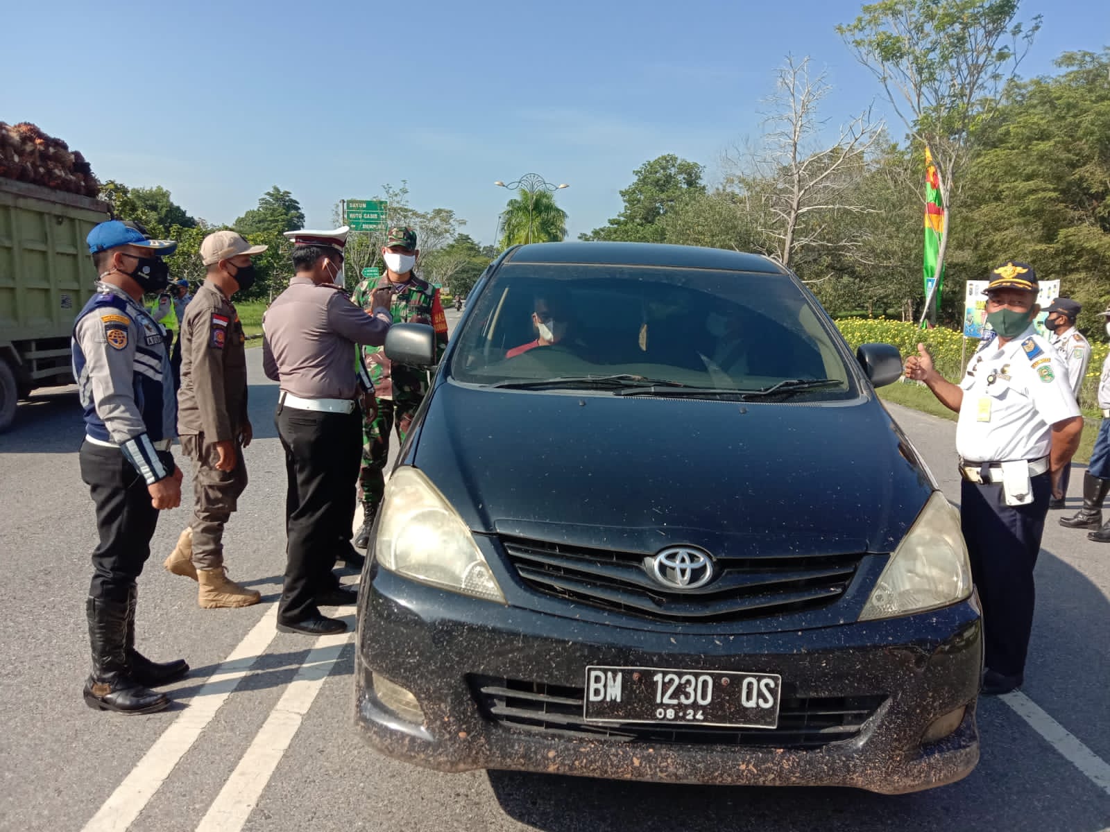 Pantauan di lokasi, sejumlah petugas gabungan dari TNI, Kepolisian, Satpol PP dan Dishub berjaga di titik penyekatan. Terlihat, satu per satu pengendara melewati pos dari arah Luar Kota menuju Kota Kab. Siak.