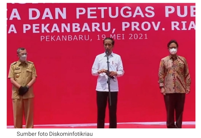 “Sehingga kita harapkan dapat mencapai kekebalan komunal dan kita juga berharap penyebaran Covid-19 di Riau bisa ditekan serendah-rendahnya,” ujar Jokowi saat meninjau vaksinasi massal di Gelanggang Olahraga Remaja (GOR) Pekanbaru, Rabu (19/5/2021).
