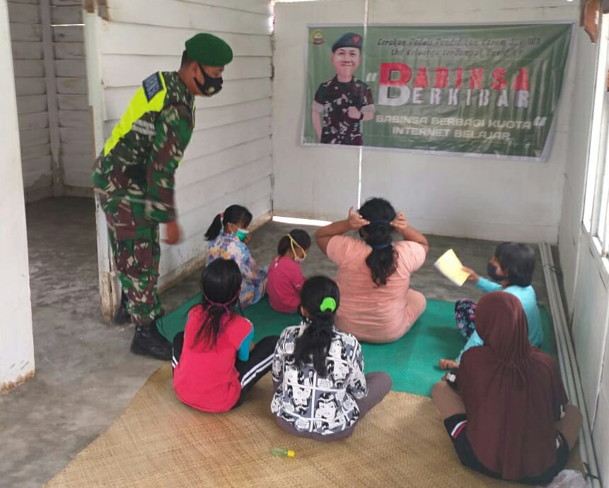 Melalui program Babinsa Berkibar (Berbagi Kuota Internet Belajar) Babinsa Kampung Lubuk Dalam Serda S. Tamba mendampingi anak-anak warga kurang mampu yang terdampak Covid-19, untuk melaksanakan kegiatan belajar mengunakan jaringan internet.