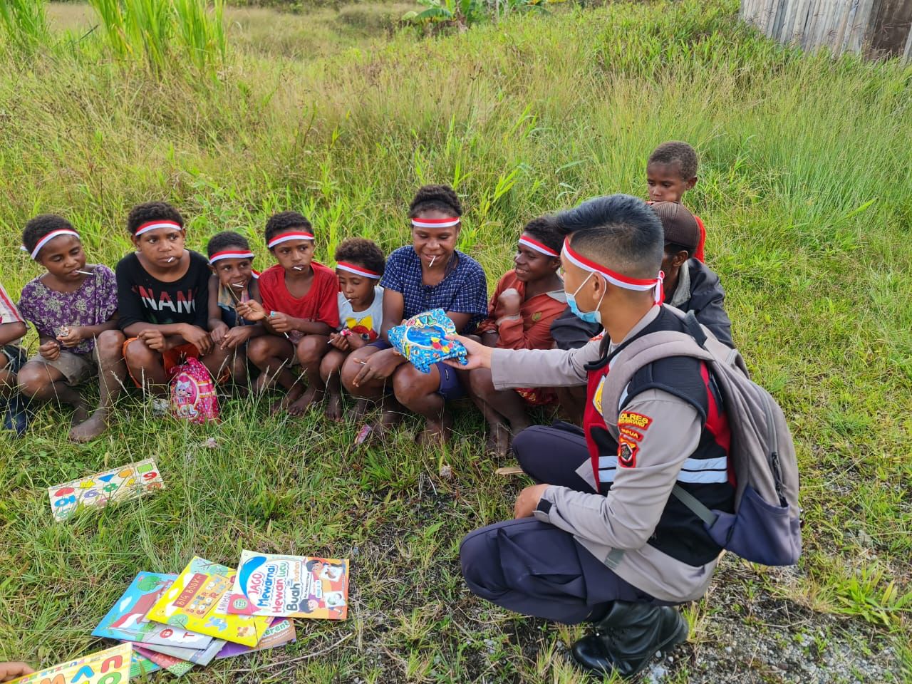 OKSIBIL – Satgas Binmas Noken Operasi Damai Cartenz 2022 Mengelar Program Kegiatan SI-IPAR, memberikan wawasan kebangsaan dan menanamkan cinta tanah air Sejak Usia Dini kepada anak-anak Kampung Pulbingin, Distrik Serambakon, Kabupaten Pegunungan Bintang, Senin (11/4/2022).