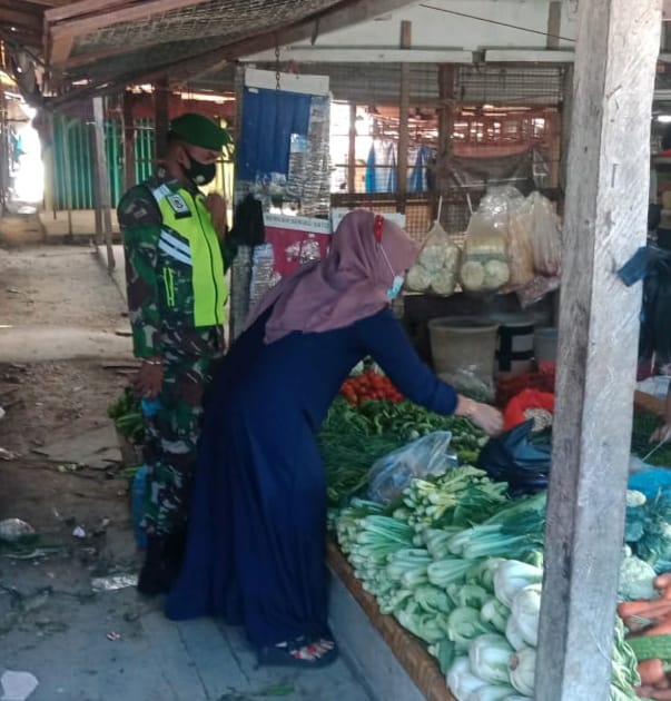 Terlihat di lokasi Pasar Serda Hariyadi sedang memberikan himbauan dan edukasi kepada para pedagang dan pembeli agar dalam melaksanakan transaksi jual beli tetap menggunakan masker dan menjaga jarak.