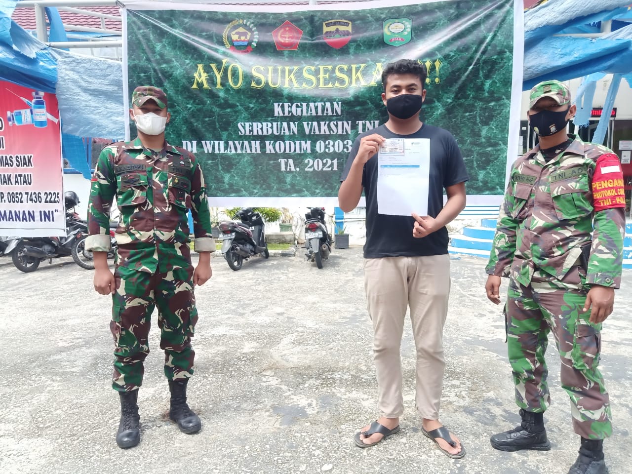 Danramil 03/Siak melalui Babinsa Kampung Rempak Serka Joni mengatakan, pemberian vaksin ini merupakan upaya untuk membantu pemerintah dalam memutus penyebaran Covid-19 dan mempercepat program vaksinasi.