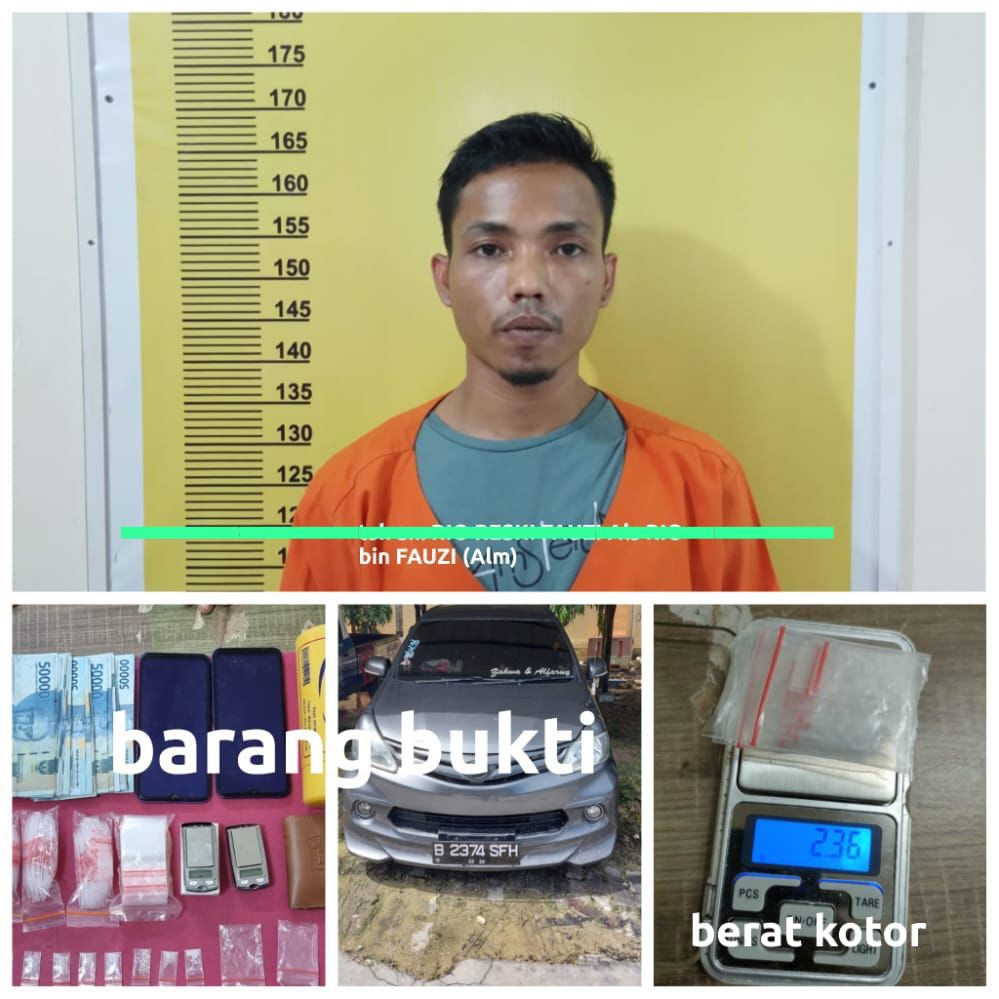 RRF (28 ) diamankan Satres Narkoba Polres Siak dengan barang bukti 9 (sembilan) paket diduga narkotika jenis Shabu dengan berat kotor 2,36 (dua koma tiga puluh enam) gram.