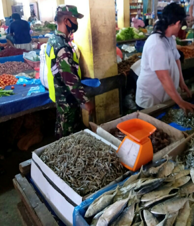 Babinda Koramil 03/Siak diawasi secara maksimal, tentu saja dengan pendekatan secara persuasif dan humanis. Terlihat di lokasi Babinsa sedang melaksanakan Komonikasi Sosial dengan para pedagang maupun pembili untuk memberikan edukasi dan mensosialisasikan pentingnya mematuhi protokol kesehatan Covid-19.