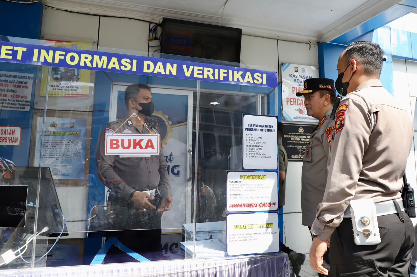 PEKANBARU – Kepala Kepolisian Daerah (Kapolda) Riau Irjen Pol Mohammad Iqbal melakukan inspeksi mendadak (sidak) ke Satuan Satuan Penyelenggara Administrasi SIM (Satpas) Polresta Pekanbaru, Jumat (28/10/2022).