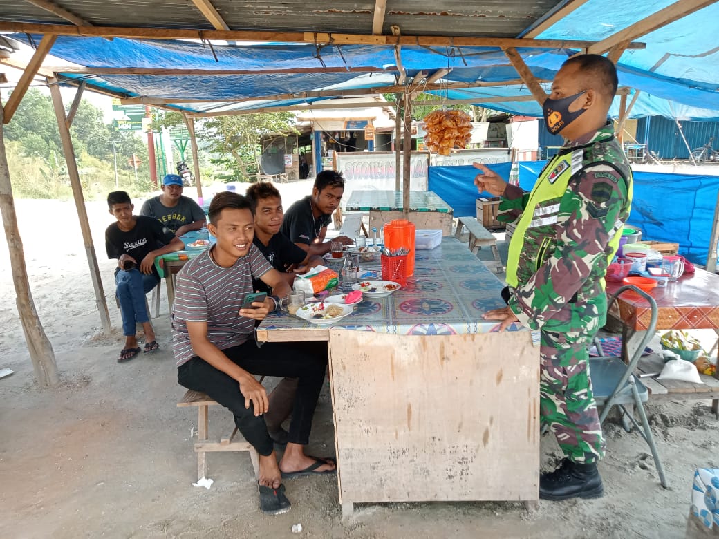 Babinsa terus melaksanakan penegakan kedisiplinan mematuhi protokol kesehatan, objek yang Pertama kita pilih tentu tempat keramaian.