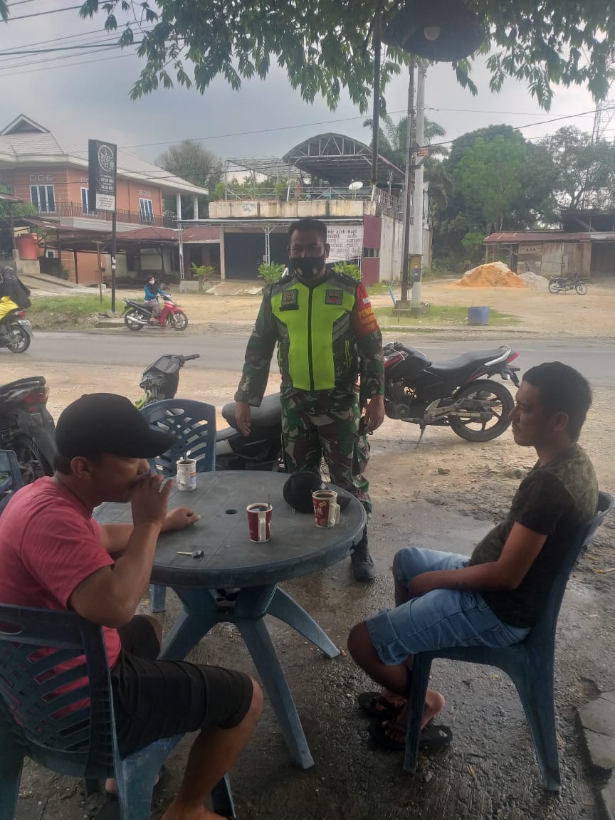 Lubuk Dalam – Untuk mencegah penyebaran Virus Corona (Covid-19) di wilayah Koramil 03/Siak Babinsa Kampung Lubuk Dalam Koramil 03/Siak Serda Ronal Tamba melaksanakan Patroli wilayah guna memastikan penegakan disiplin dan mematuhi protokol kesehatan di Kampung Binaan Lubuk Dalam Kecamatan Lubuk Dalam Kabupaten Siak, Selasa (03/08/2021).
