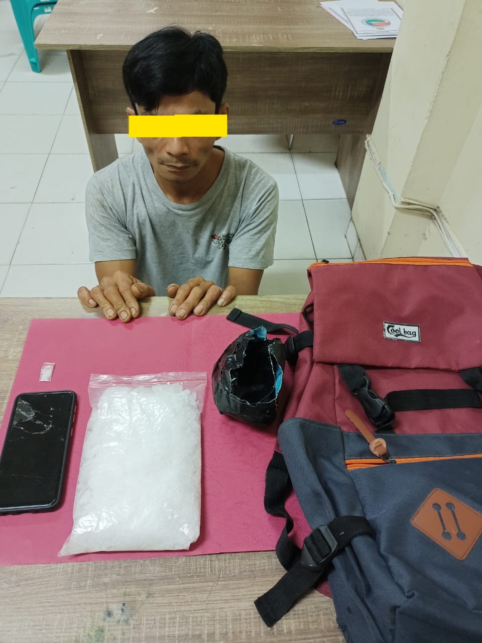 Lanjut AKP Jailani menjelaskan bahwa ketika itu juga tim langsung melakukan penangkapan dan penggeledahan terhadap 1 (satu) orang laki-laki yang mengaku bernama  ET (40) Setelah dilakukan penggeledahan ditemukan 2 (dua) paket diduga Narkotika Jenis Shabu yang mana 1 (satu) paket kecil di temukan di kantong sebelah kanan tersangka dan 1 (satu) paket besar di temukan didalam tas milik ET