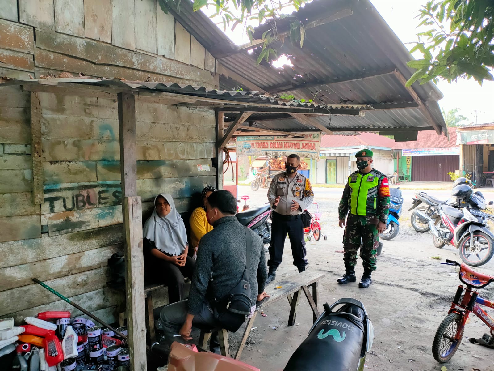 Kerinci Kanan – Tugas pokok dan kegiatan rutin Babinsa Kampung Simpang Perak Jaya Koramil 03/Siak Kodim 0303/Bengkalis Serda Albert Siburian bersama Bhabinkamtibmas Polsek Kerinci Kanan, melaksanakan sambang warga binaannya untuk menyampaikan himbauan kepada warga binaannya tentang penerapan protokol kesehatan dimasa pandemi covid-19 pada saat melaksanakan aktivitas diluar rumah di Kampung Simpang Perak Jaya Kecamatan Kerinci Kanan Kabupaten Siak,Minggu (17/10/2021).