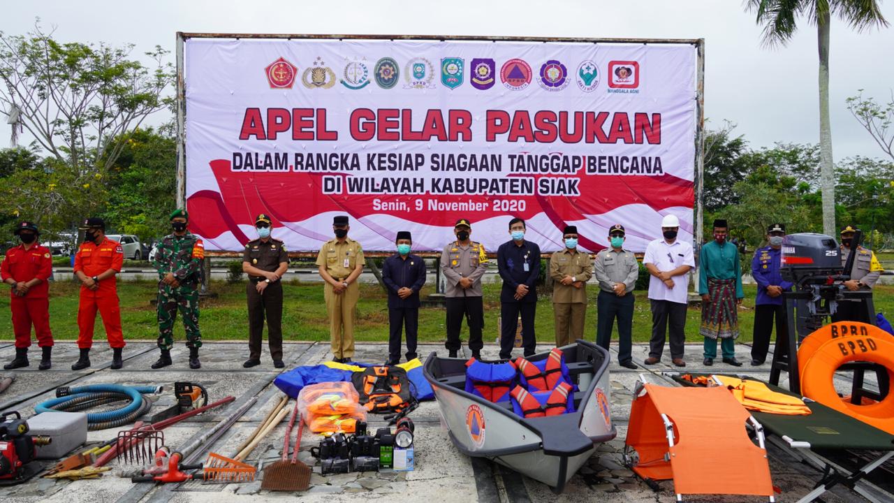 Untuk mengantisipasi itu semua, Polres Siak, Senin (09/11/2020) menggelar Apel Gelar Pasukan Tanggap Darurat Penanggulangan Bencana Alam Tahun 2020 bertempat di Halaman apel kantor bupati siak.