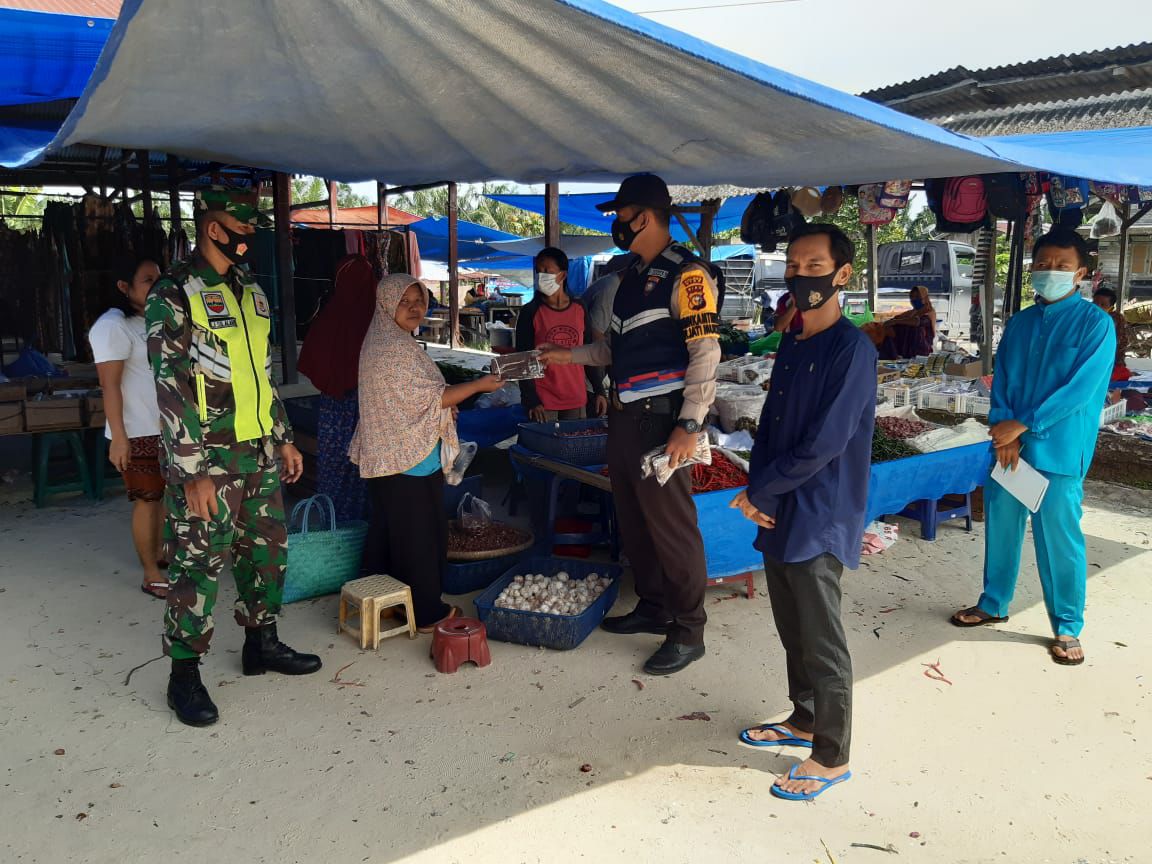 Babinsa Koramil 03/Siak Sertu Junaidi Silalahi yang bertugas melaksanakan penegakan disiplin protokol kesehatan di Pasar Tradisional sekaligus melaksanakan sosialisasi serta berikan imbauan kepada masyarakat yang melaksanakan aktifitas jual beli untuk menerapkan 5M (Memakai masker, Mencuci tangan,Menjaga jarak,Menghindari kerumunan dan Mengurangi mobilitas) serta menyampaikan kepada pengunjung pasar untuk menggunakan alat pelindung diri dalam masa pandemi Covid-19 ini. “Tolong maskernya dipakai dan jangan lepas masker jika berada di luar rumah. Supaya proses penularan virus corona tidak terjadi,” jelasnya.