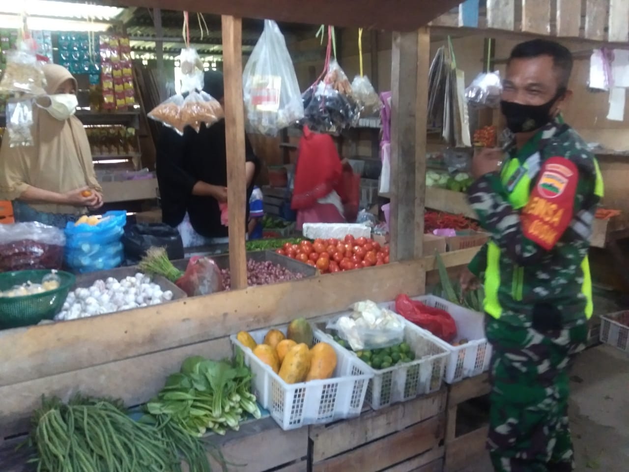Selain itu, Babinsa juga meminta agar pedagang dan pembeli di Pasar pagi tetap tenang tetapi tetap waspada, terkait adanya penyebaran Virus Corona(Covid19).