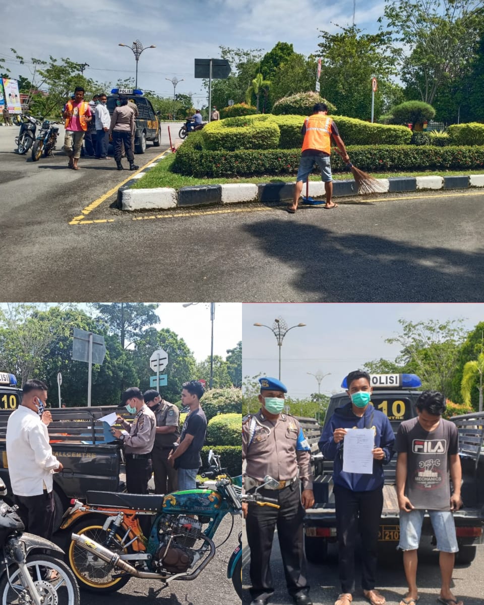 Lanjut, operasi Yustisi di kota Siak ini warga yang melanggar Protokol Kesehatan akan di berikan hukuman ringan yaitu menyapu jalan dan berikan teguran tertulis.
