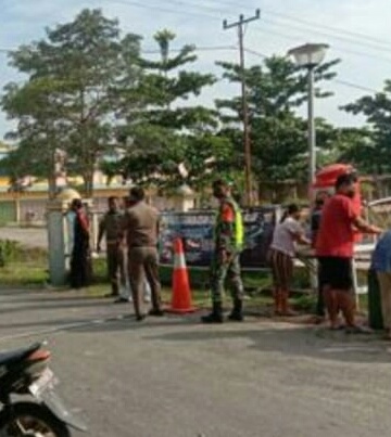 Siak Sri Indrapura – Dalam rangka penegakan Protokol kesehatan Covid 19 di Pintu masuk dan Keluar Pasar Tradisional Belantik Raya Kelurahan Kampung Dalam Kecamatan Siak Kabupaten Siak.
