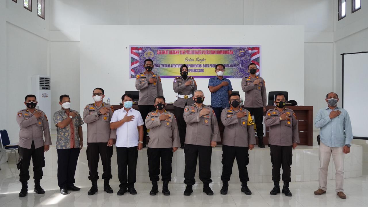 SIAK ,-Tim Pusat Penelitian dan Pengembangan (Puslitbang) Polri laksanakan Supervisi dan penelitian Tentang Efektifitas Implementasi Sistem Organisasi Tata Kerja (SOTK) Pusinafis Bareskrim Polri di kewilayahan, Rabu (09/06/2021) di Gedung Endra Dharma Laksana Polres Siak.