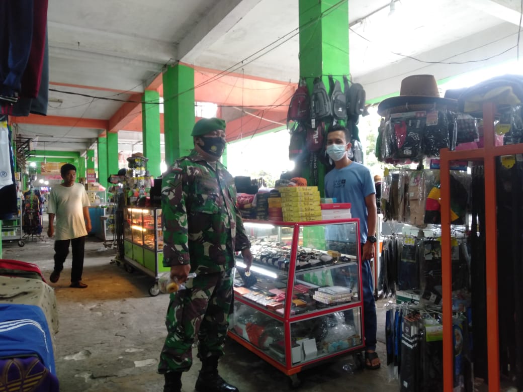 Babinsa Kampung Kumbara Utama Koramil 03/Siak Serda Rudi Panjaitan melaksanakan himbauan kepada warga yang sedang melaksanakan jual beli agar tetap mematuhi protokol kesehatan dengan tetap menggunakan masker, jaga jarak dan rajin mencuci tangan. Hal ini merupakan langkah awal untuk memutus dan mencegah penularan Covid 19.