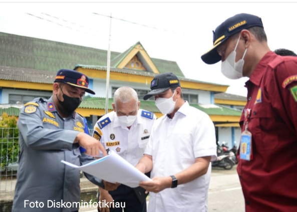 SIAK – Gubernur Riau (Gubri) Syamsuar didampingi Kepala Dinas Kepala Dinas Pekerjaan Umum Penataan Ruang Perumahan Kawasan Pemukiman dan Pertanahan (PUPR PKPP) Riau Taufiq OH melakukan kunjungan ke Kabupaten Siak dalam rangka peninjauan pembangunan Ruas jalan, Sabtu (24/7/2021).