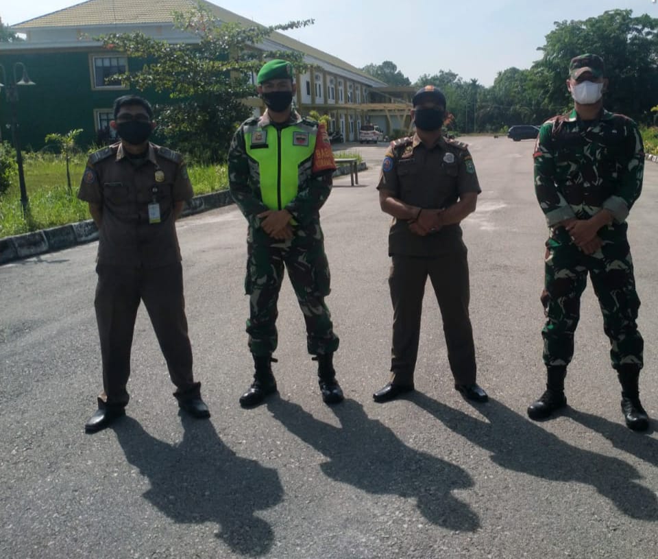 Siak Sri Indrapura – Aparat TNI dan Satpol PP akan menjaga serta mengawasi aktivitas Pengunjung dan Pasien Covid 19 di Asrama Haji, yang mana gedung tersebut digunakan sebagai lokasi isolasi pasien Covid-19 di wilayah Kabupaten Siak, Senin (21/06/2021).